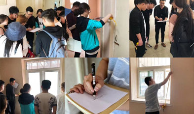 武汉新华实训的老师们,带领同学们进行房屋测量现场教学。
