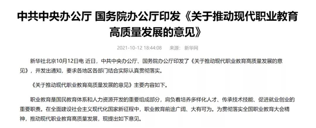 【行业资讯】中办国办共同发文,职业教育大有可为!